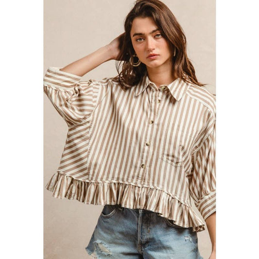 Sierra Stripe Ruffled Hem Button-Up Shirt