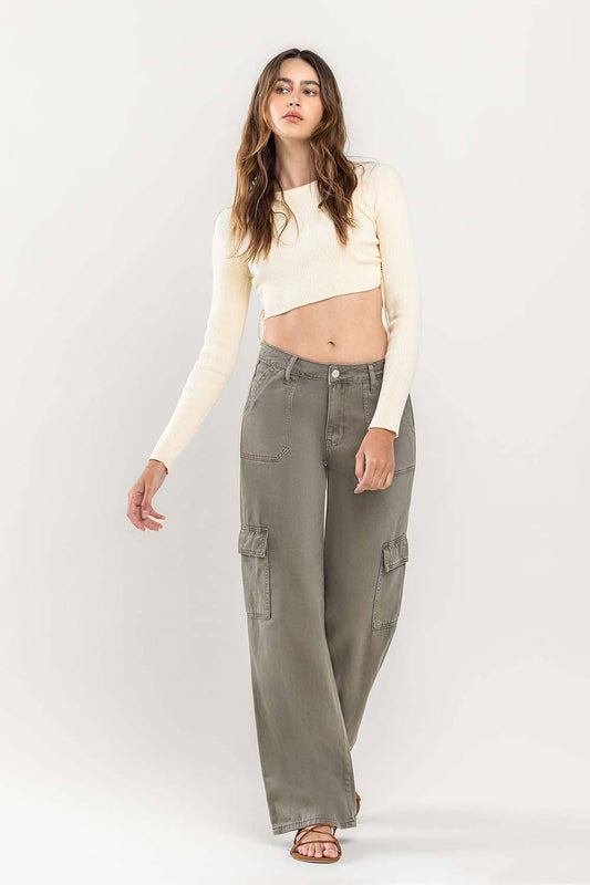 HIGH RISE UTILITY CARGO WIDE JEANS SMOKEY OLIVE