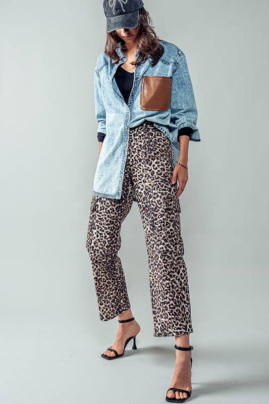 Leopard Print Cropped Cargo Pants