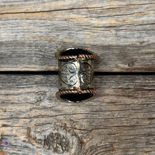 German Silver Floral Concho Wild Rag Slide with Turquoise Stone & Copper Rope Edge