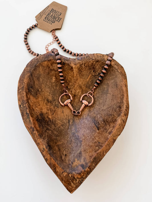 Copper Horsebit Turquoise Navajo Pearl Necklace