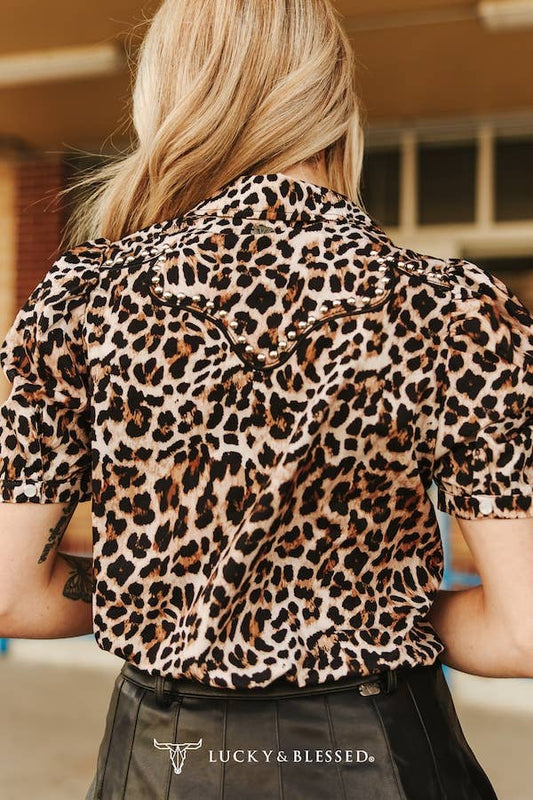 Leopard Studded Puff Sleeve Western Shirt