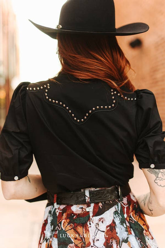 Studded Yoke Pearl Snap Western Blouse – Black