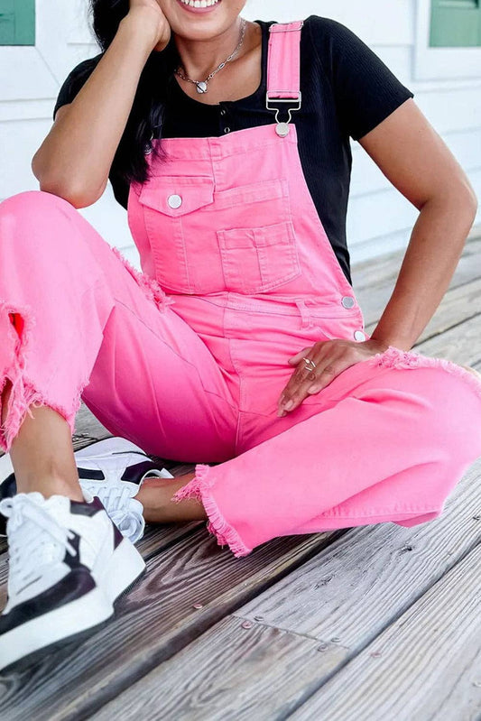 Hot Pink Pirouette Distressed Denim Overalls