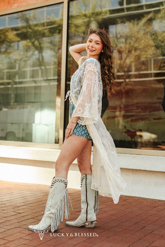 Ivory Western Embroidered Mesh Lace Duster