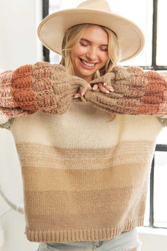 Loose Fit Exposed Seam Slouchy Sweater In Olive and Taupe