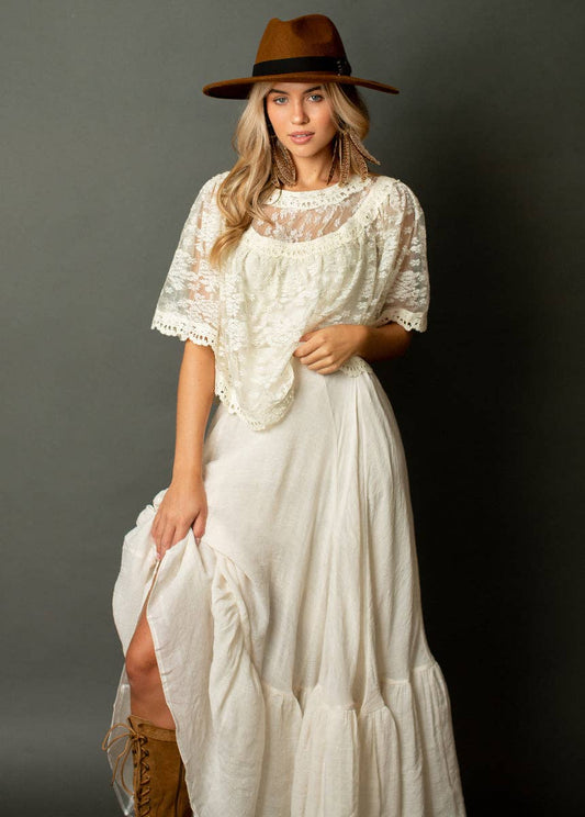 Ivory Ruffled Cap Sleeve Crochet Sweater