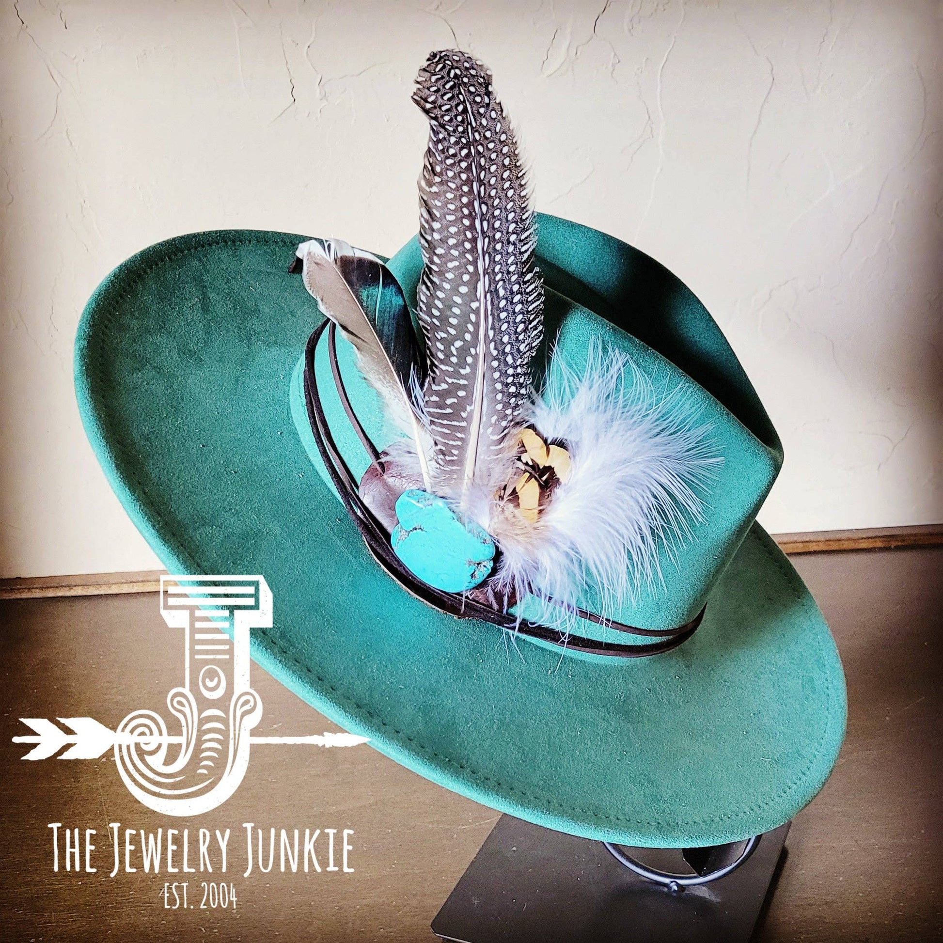 Boho Western Hat Turquoise Hat Accent Blue Turquoise and Spotted Feather