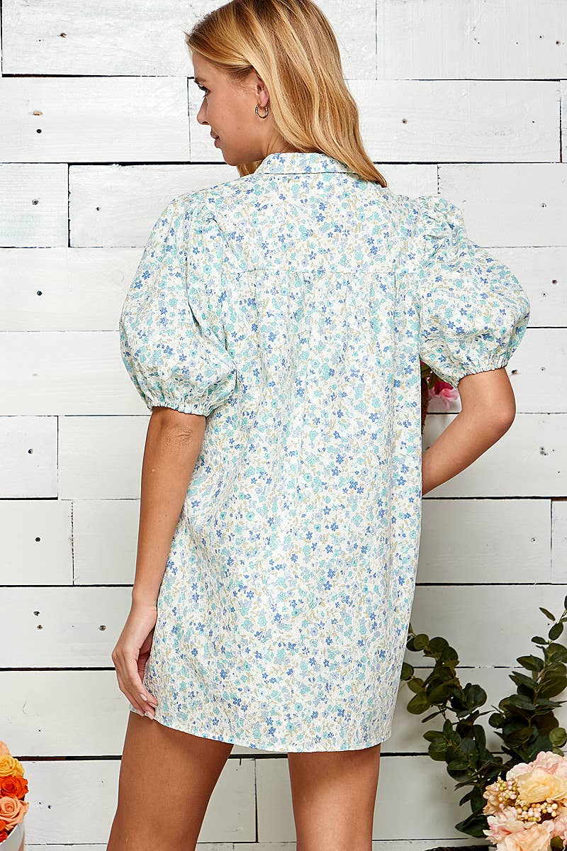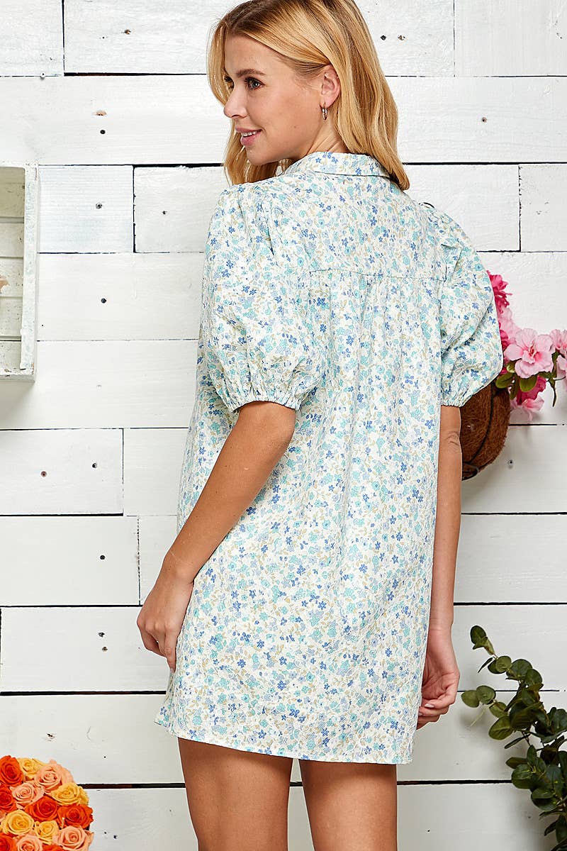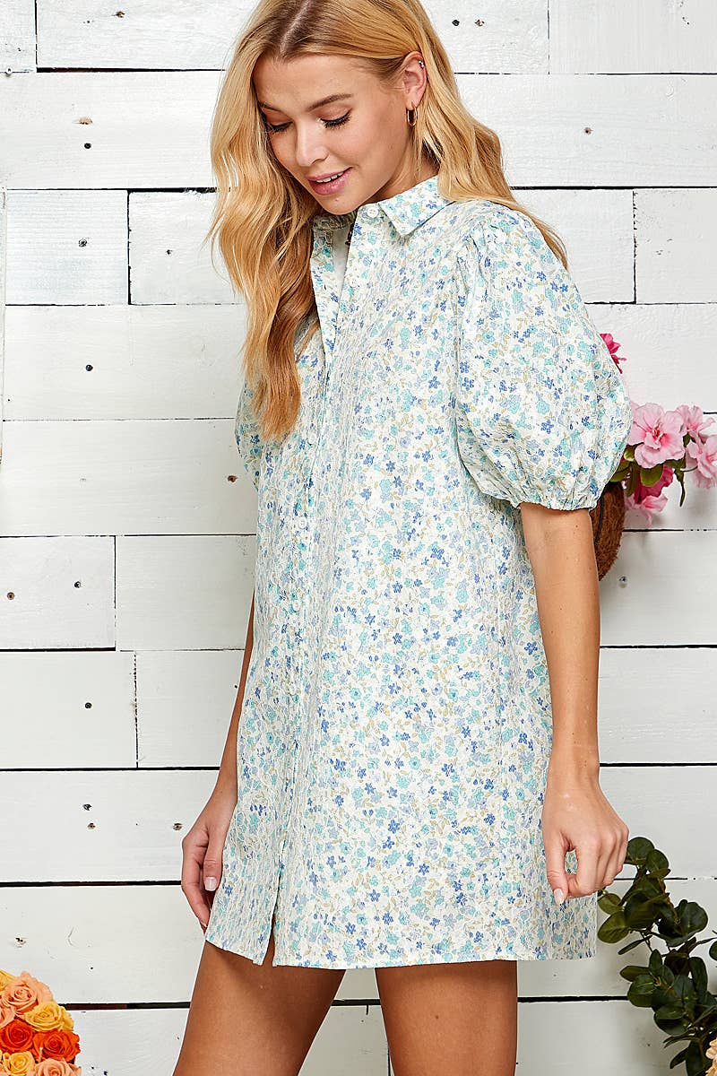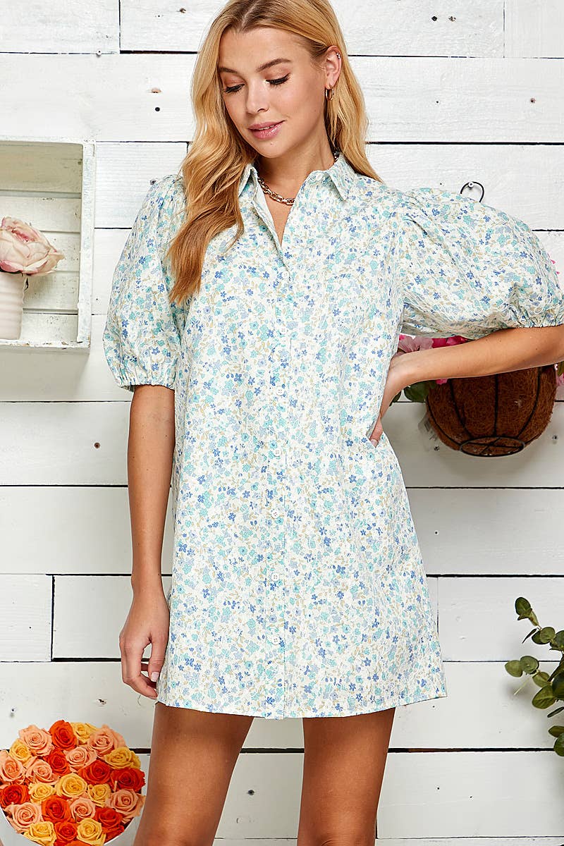 FLORAL TEXTURED BUTTON DOWN DRESS