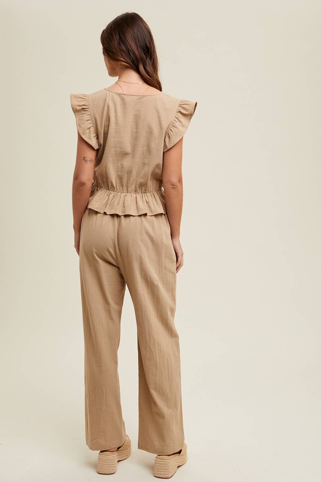 RUFFLE RELAXED CROP TOP AND PANTS SET MOCHA
