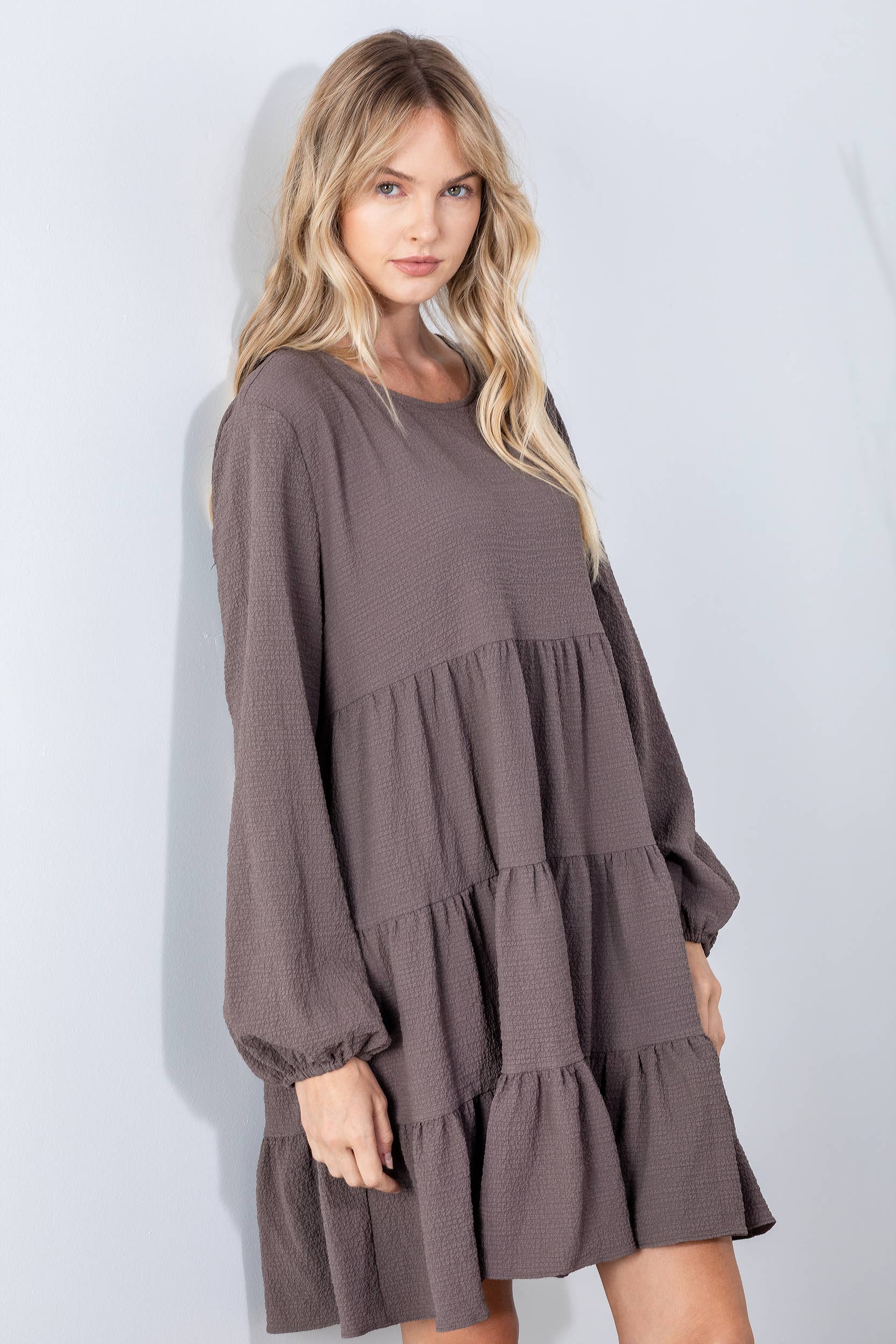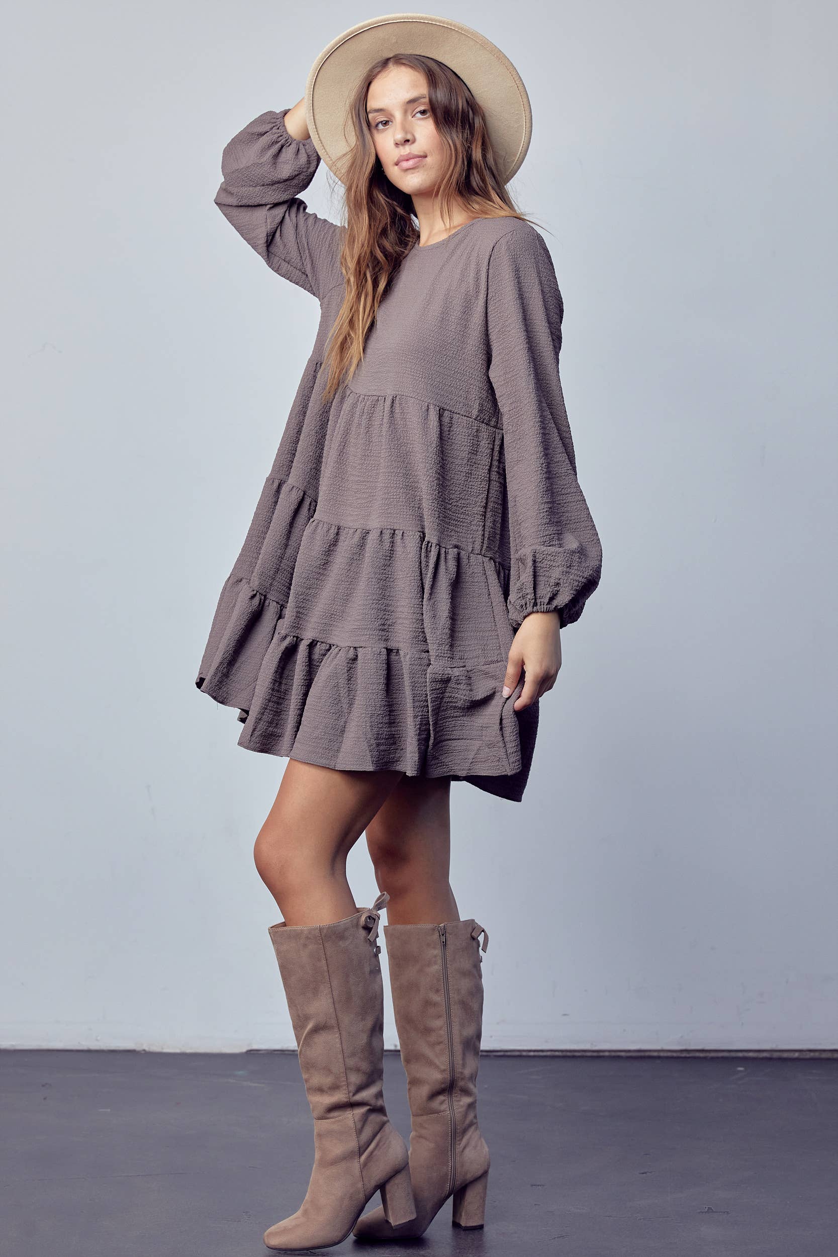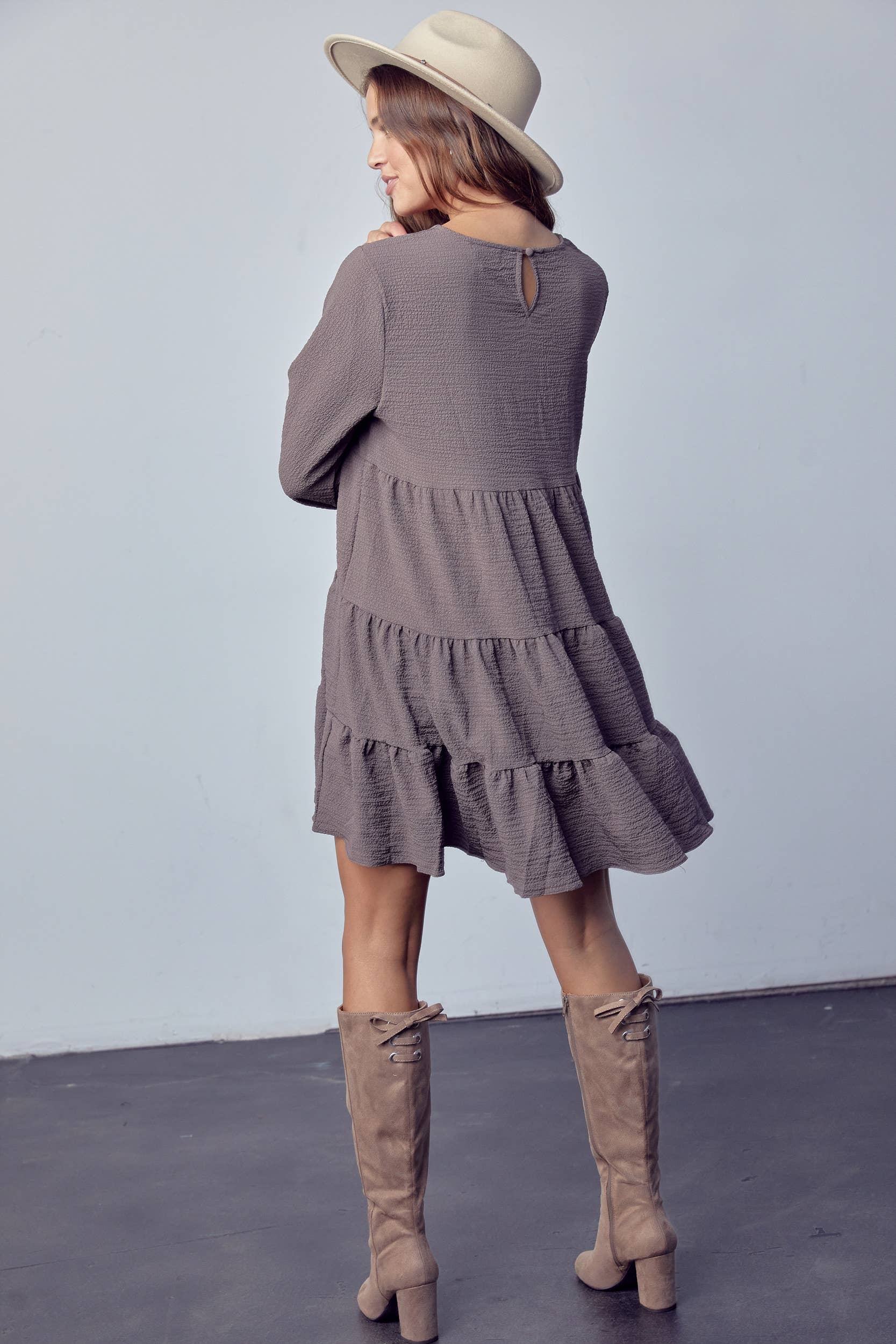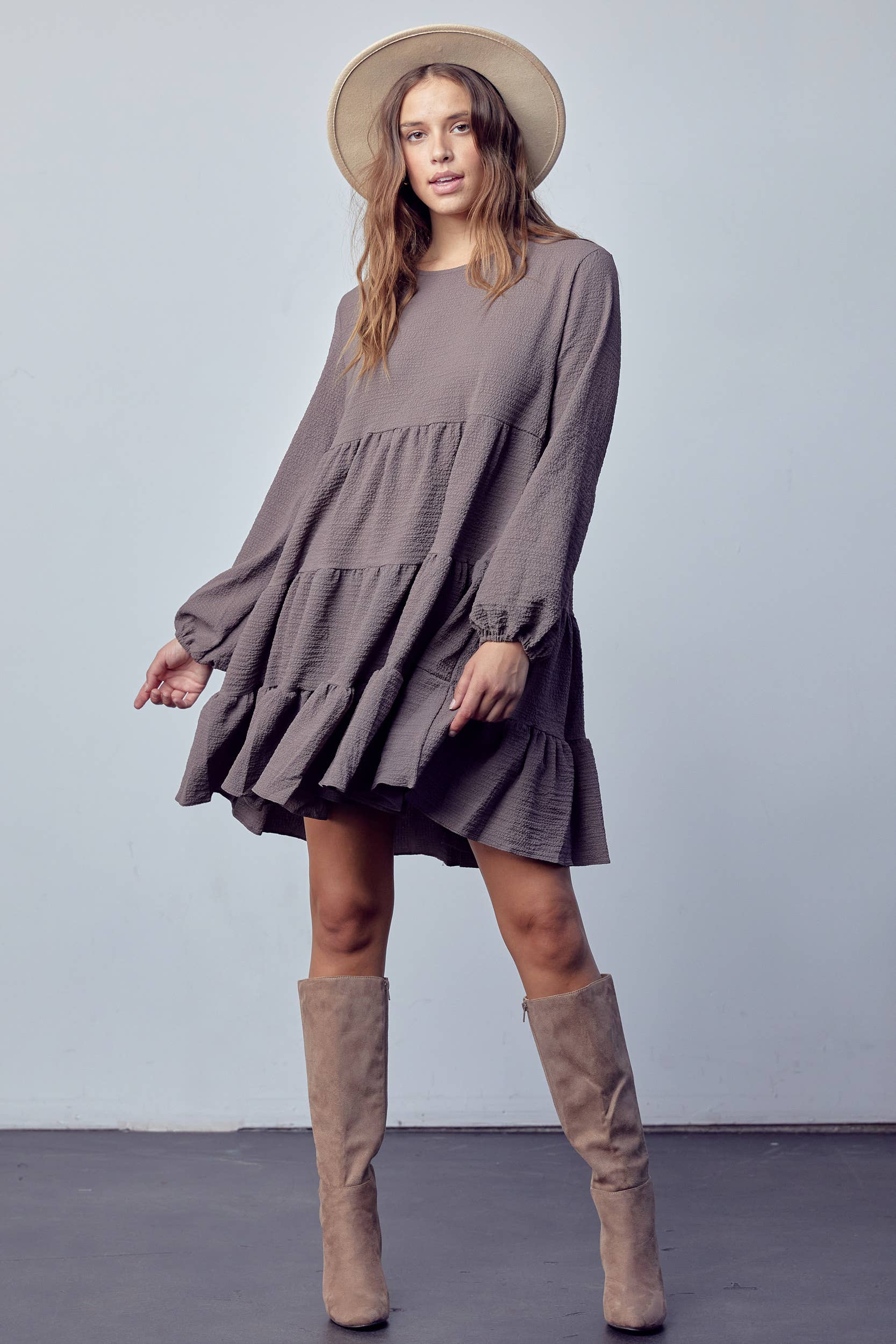 Get ready to stand out in the crowd with our Charcoal Ruffled Dress! Featuring an oversized ruffle design, this dress is perfect for both casual dinners and fun days out. With its flirty style, it's the perfect addition to your fall wardrobe!
