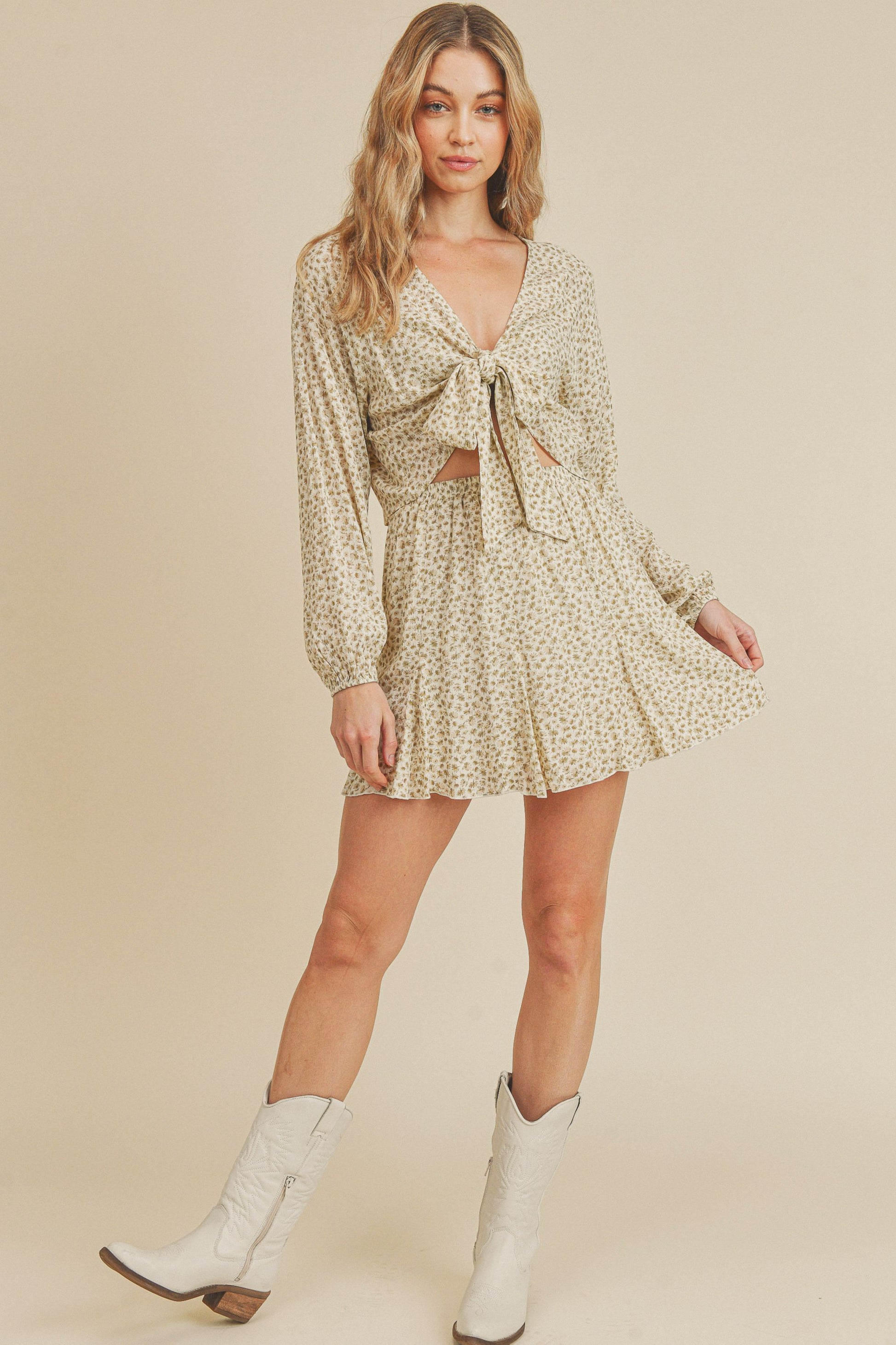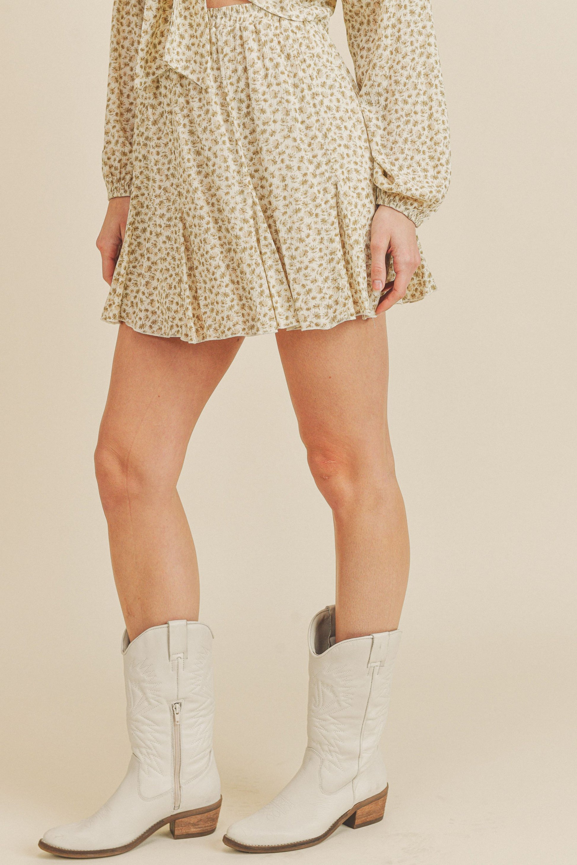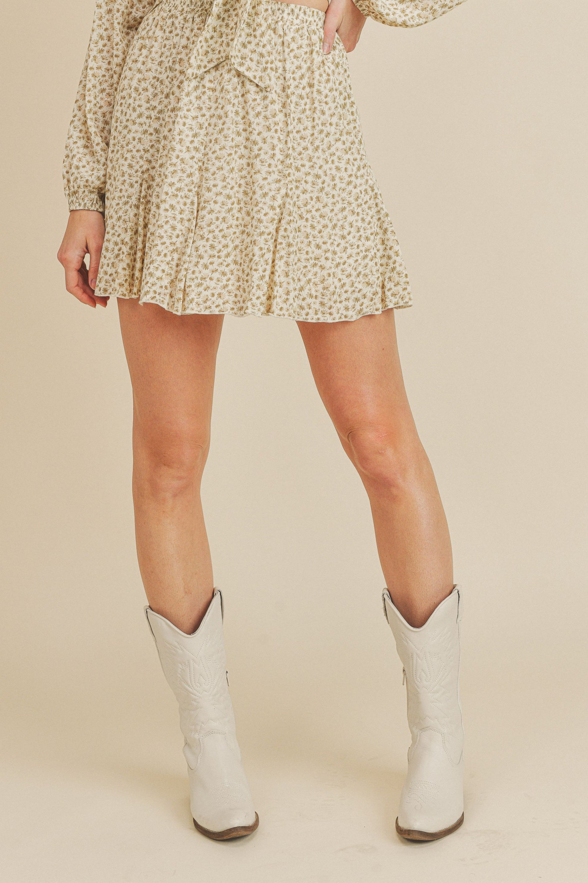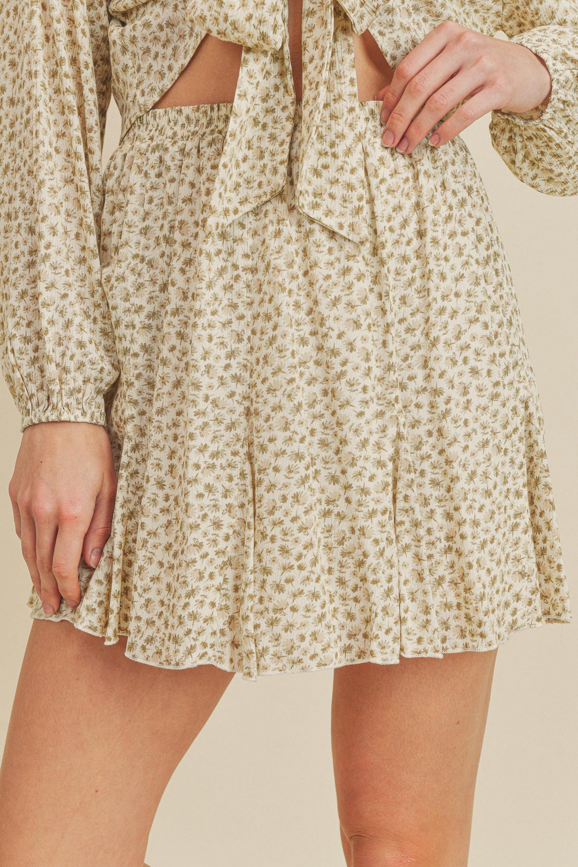 This Short Mini Skirt is the perfect piece to complete any outfit. It features a garterized waist, floral daisy skirt, short godet details, and mini length that is sure to give your wardrobe a stylish boost. Make a fashion statement with this eye-catching look!