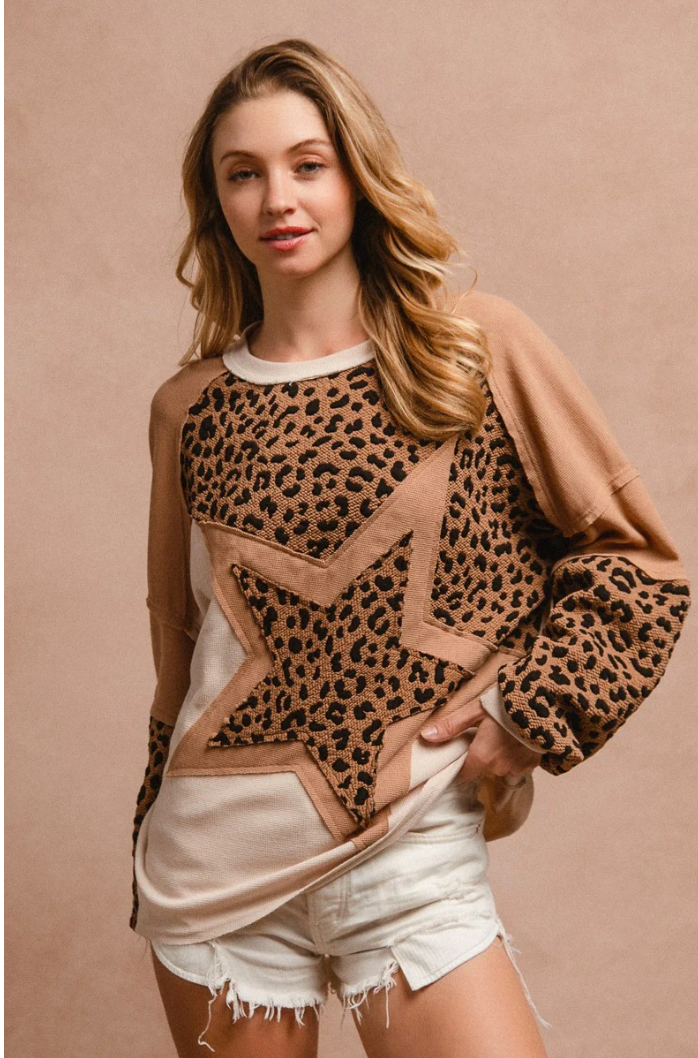 Effortlessly cool with a touch of wild, our Star Patched Thermal Knit in Camel is the perfect statement piece for any modern cowgirl. This oversized thermal features a bold leopard print star patch front and center, adding instant western attitude to your everyday look.