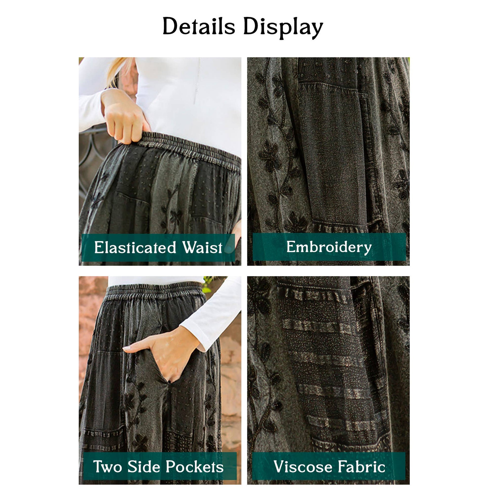 Women Patchwork Embroidered Maxi Skirt With Side Pockets